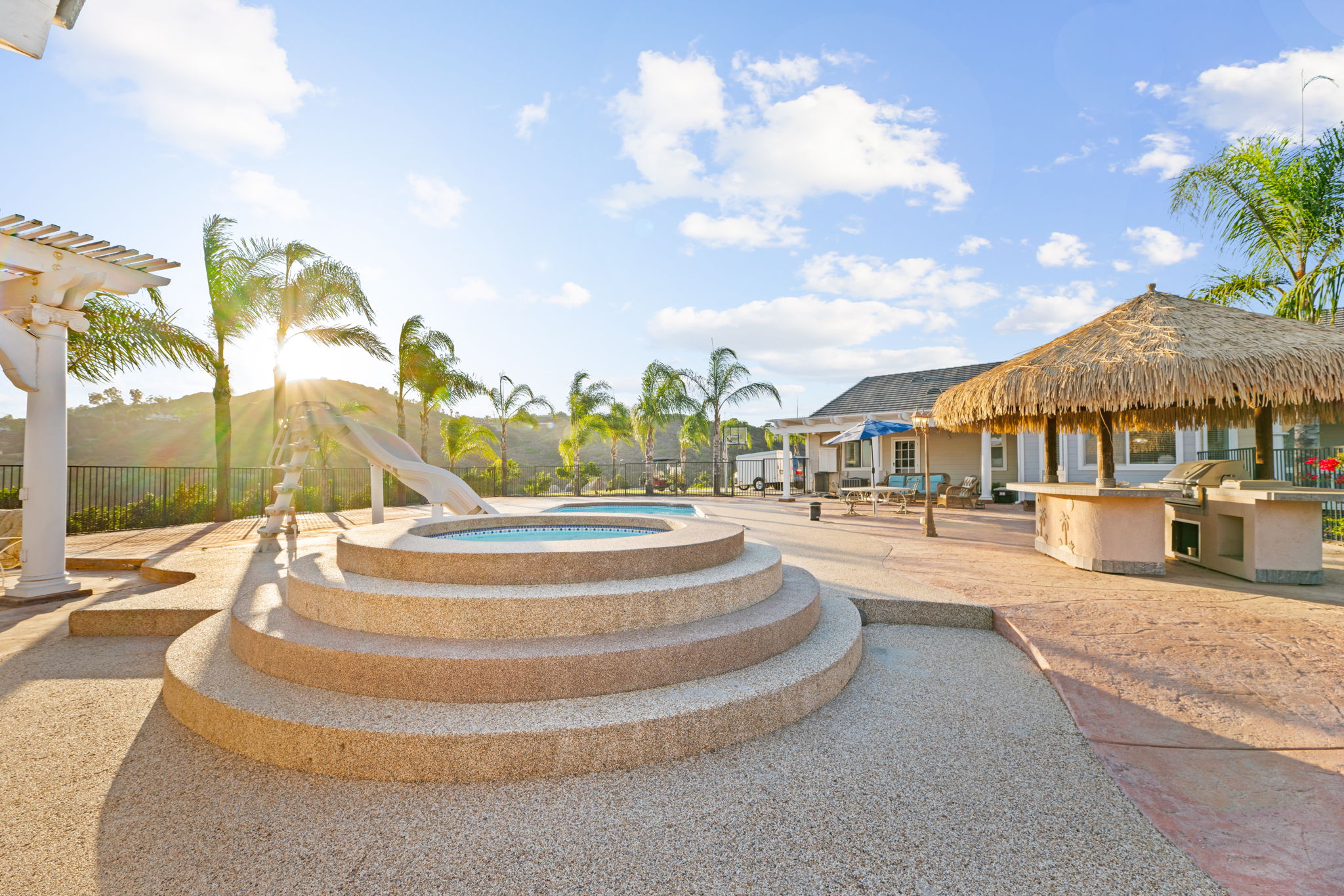 Step outside and it feels like your own private getaway. There’s a sparkling pool and spa, a built-in BBQ with palapa and Kegerator, plus a pool bathroom and outdoor shower—everything you need to make the most of Southern California living. For added convenience, you’ll also find paved RV parking with a 30 AMP outlet and a graded lot already set up with water and power for a future ADU.